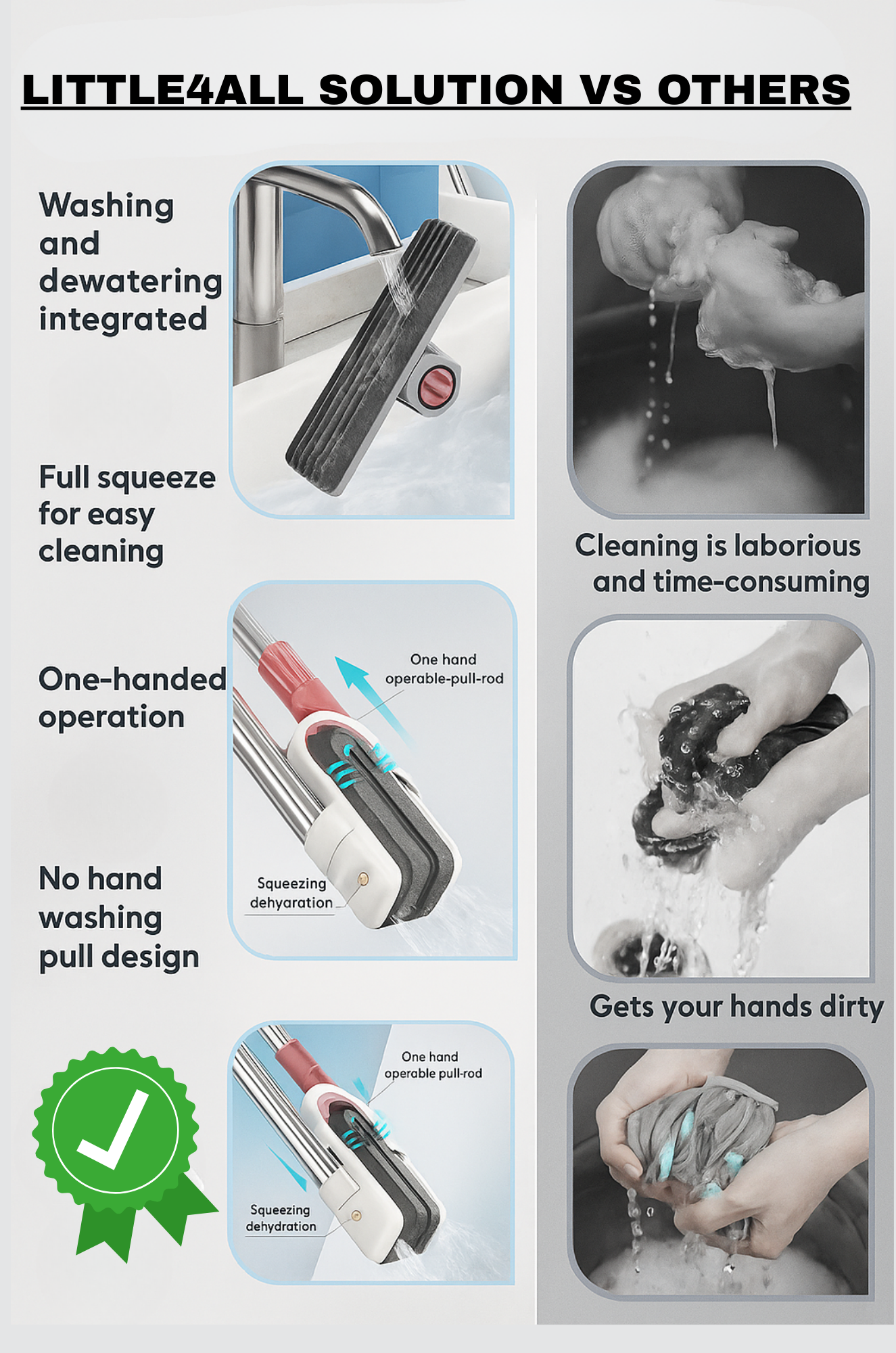 With its ultra-absorbent sponge + built-in wringer, this mop makes cleaning faster, smarter, and totally stress-free. No buckets. No drips. No hassle.